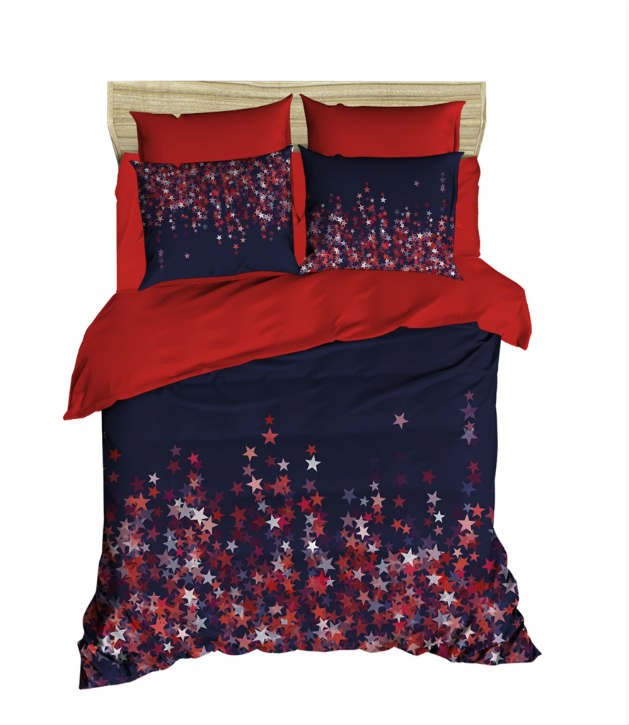 У модели Shiny Strars простыня и низ пододеяльника красные, а верх тёмно-синий с разноцветными звёздами.
