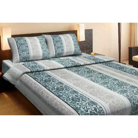 Комплект «King 1» - серо-бирюзового цвета в виде широких полос с узором.