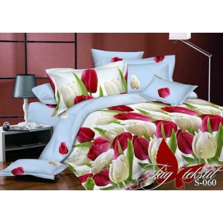 Модель S-060 имеет голубую простынь и пододеяльник с изображением белых и красных тюльпанов.