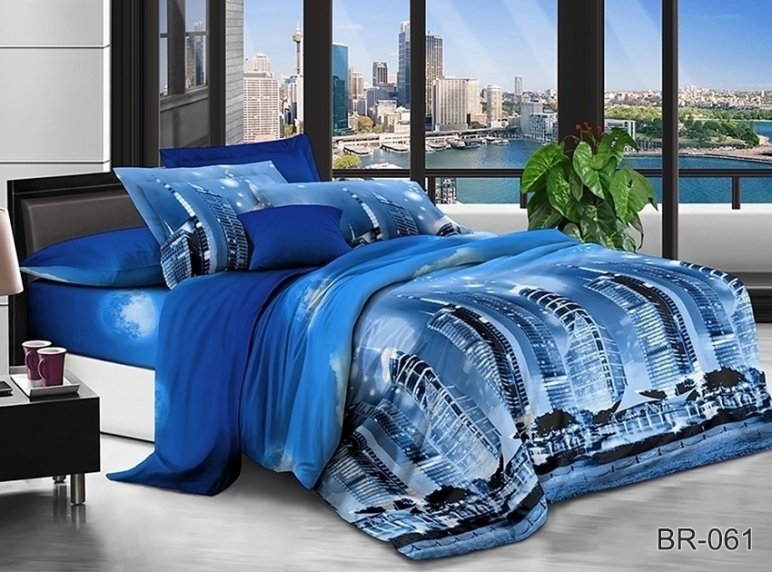 3D постельное бельё TAG поликоттон BR061 синее