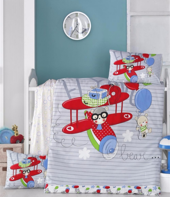 Детское постельное бельё в кроватку для новорожденных Light House Flying ранфорс