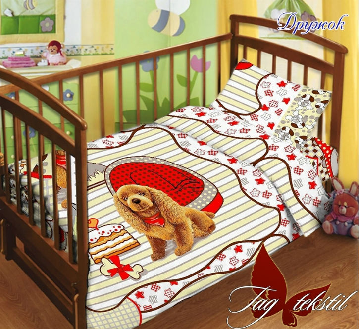 Детское постельное бельё в кроватку для новорожденных TAG поплин Дружок